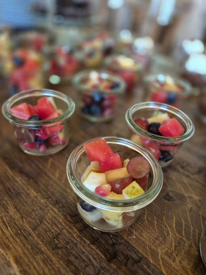Alles in kleinen Bissen, damit jeder Gast alles probieren kann.